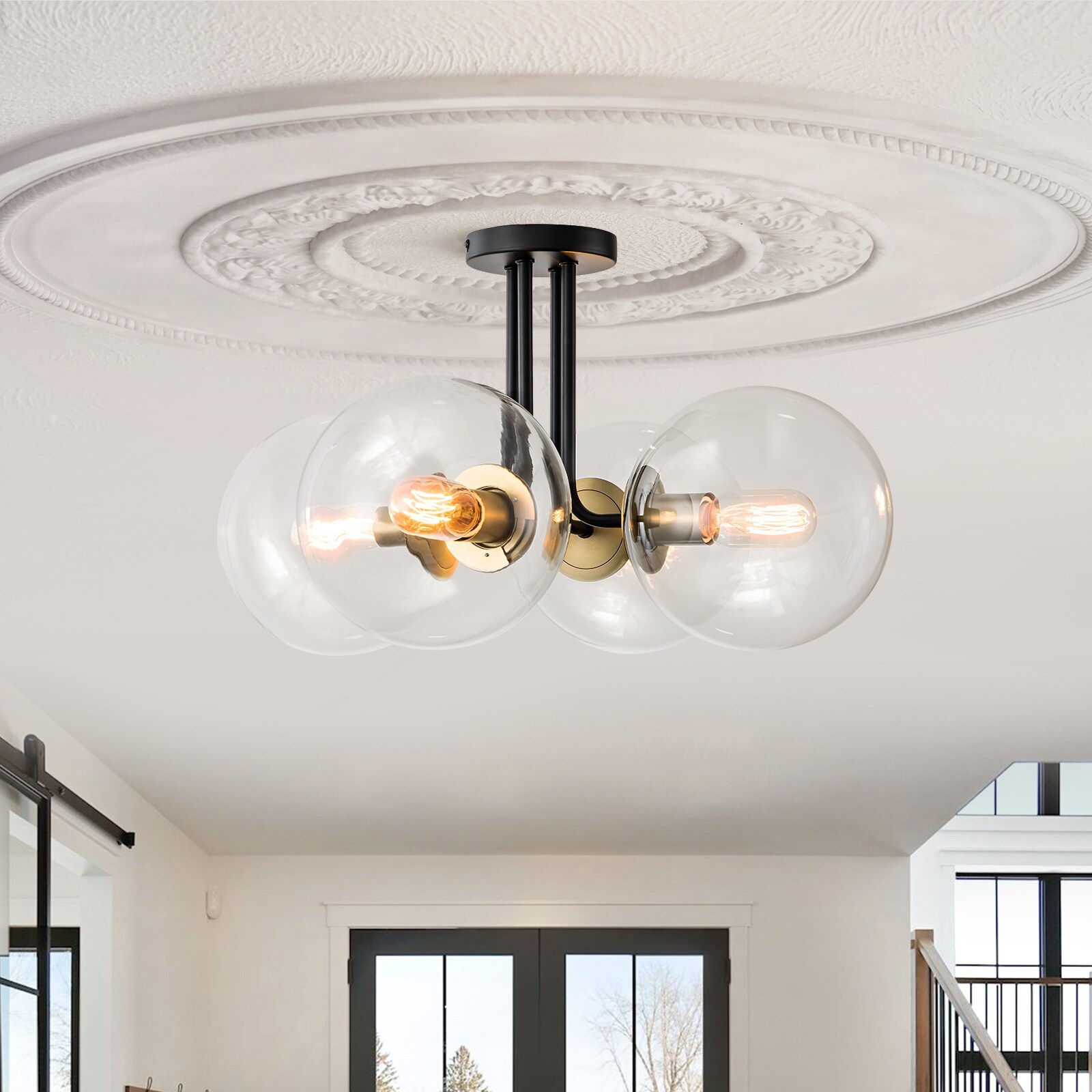 4 - Light Modern Linear Globe Glass Semi Flush Mount Ceiling Light