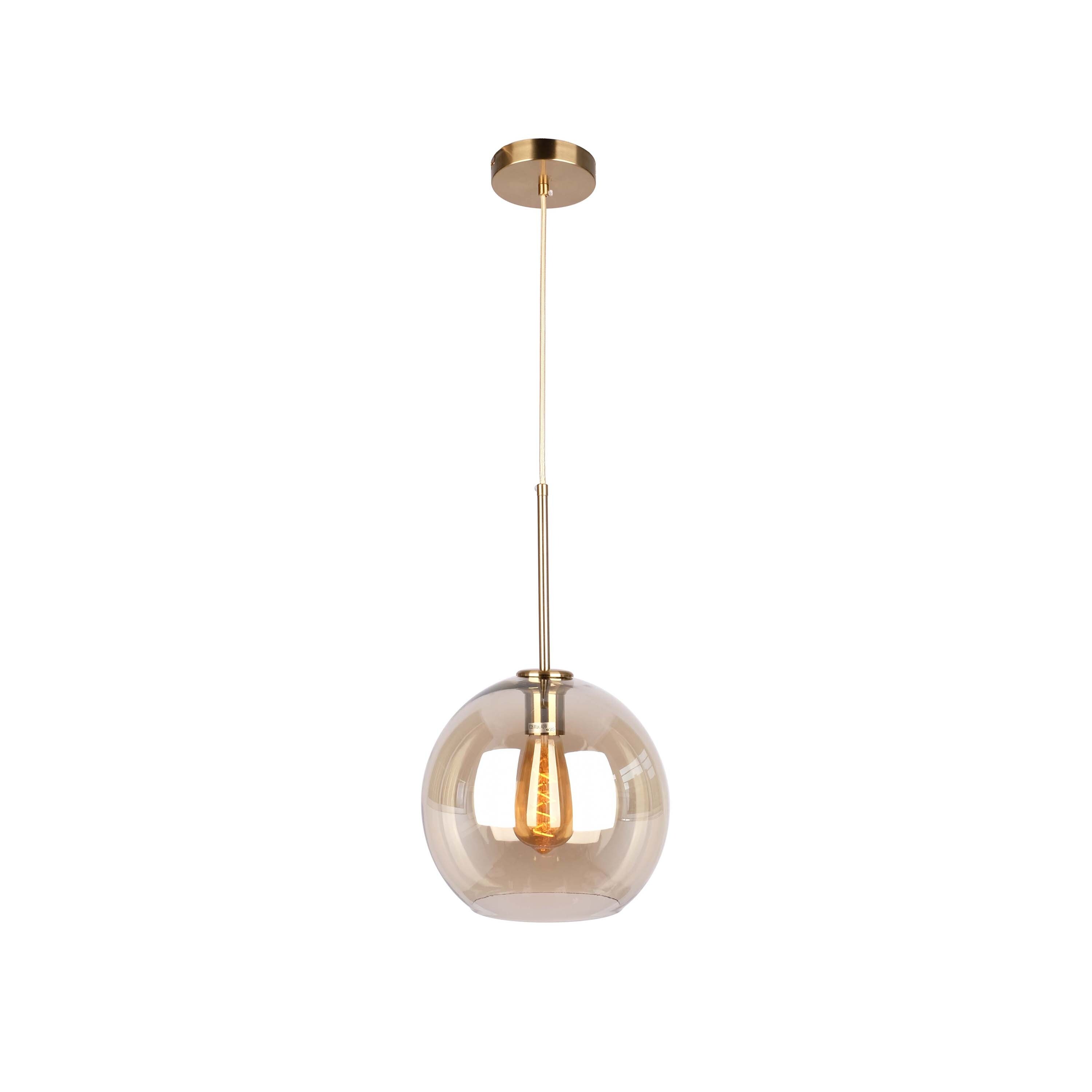 Kempton Mid-Century Cognac Glass Globe Pendant Light, 10 inches - 10"