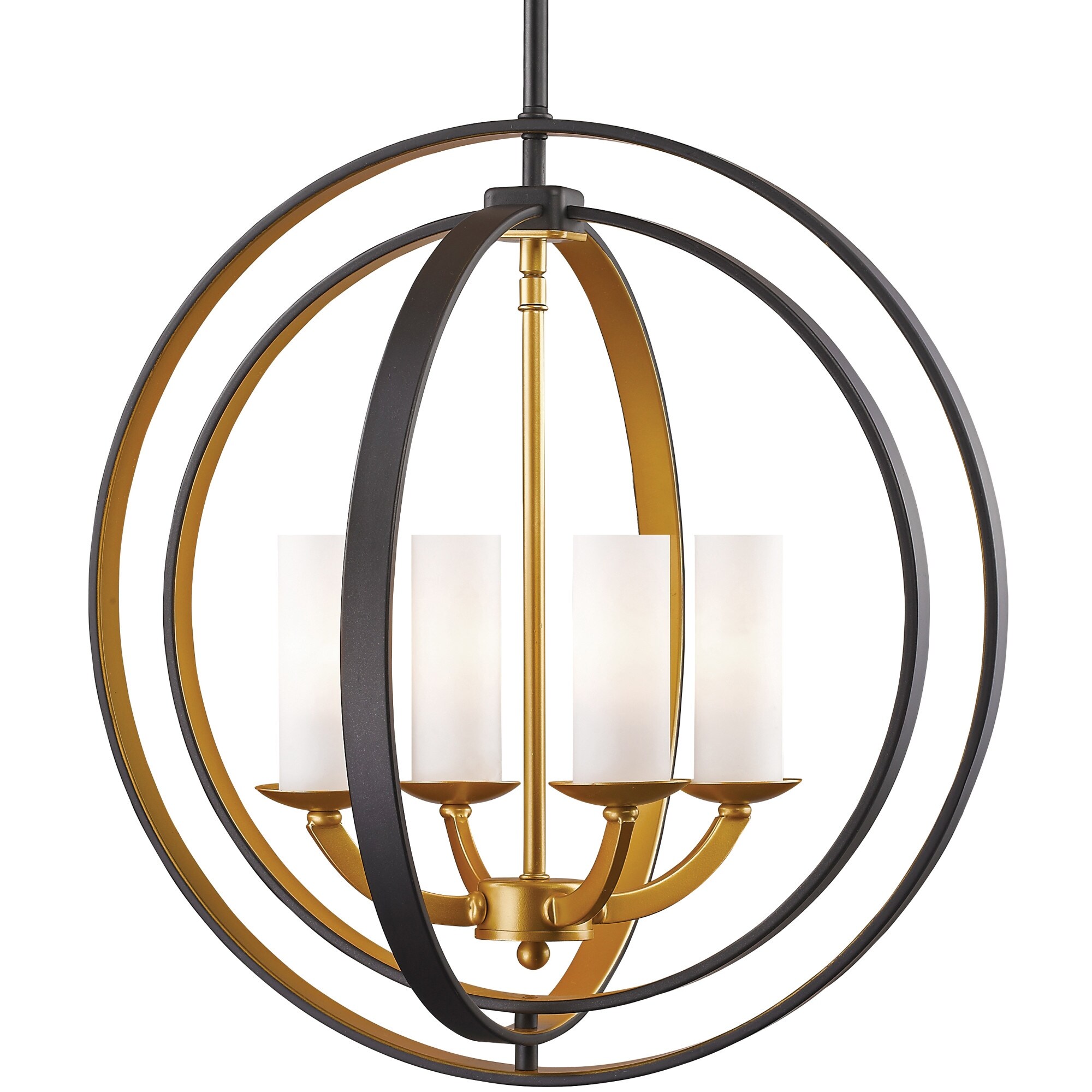 Modern Farmhouse 4-Light Black Gold Chandelier Globe Glass Pendant Lights for Dining Room - 20" D x 19" H