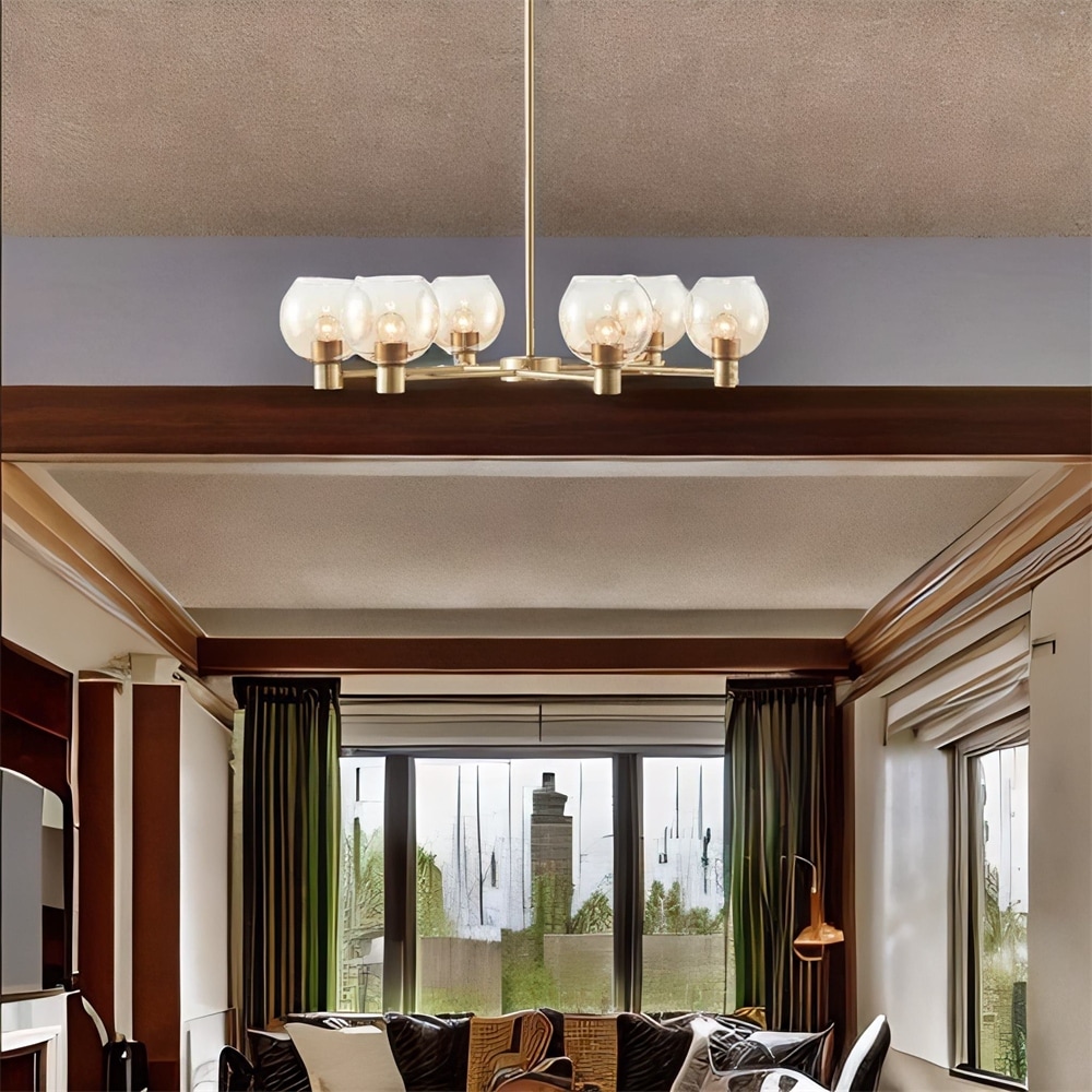 Skiathos Mid Century Pendant Lighting Brass Globe Glass Chandeliers 7-Light
