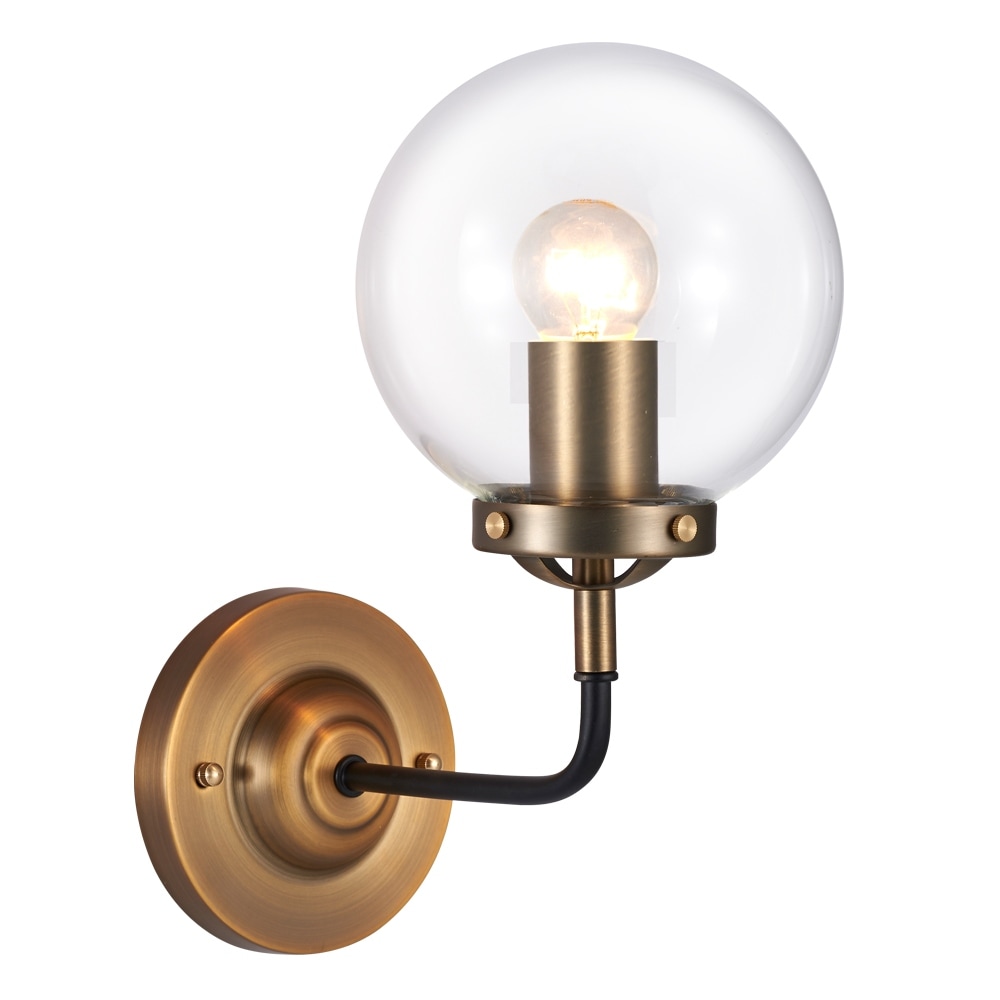 Everly 1-Light Brass Wall Sconce with Clear Glass Globe