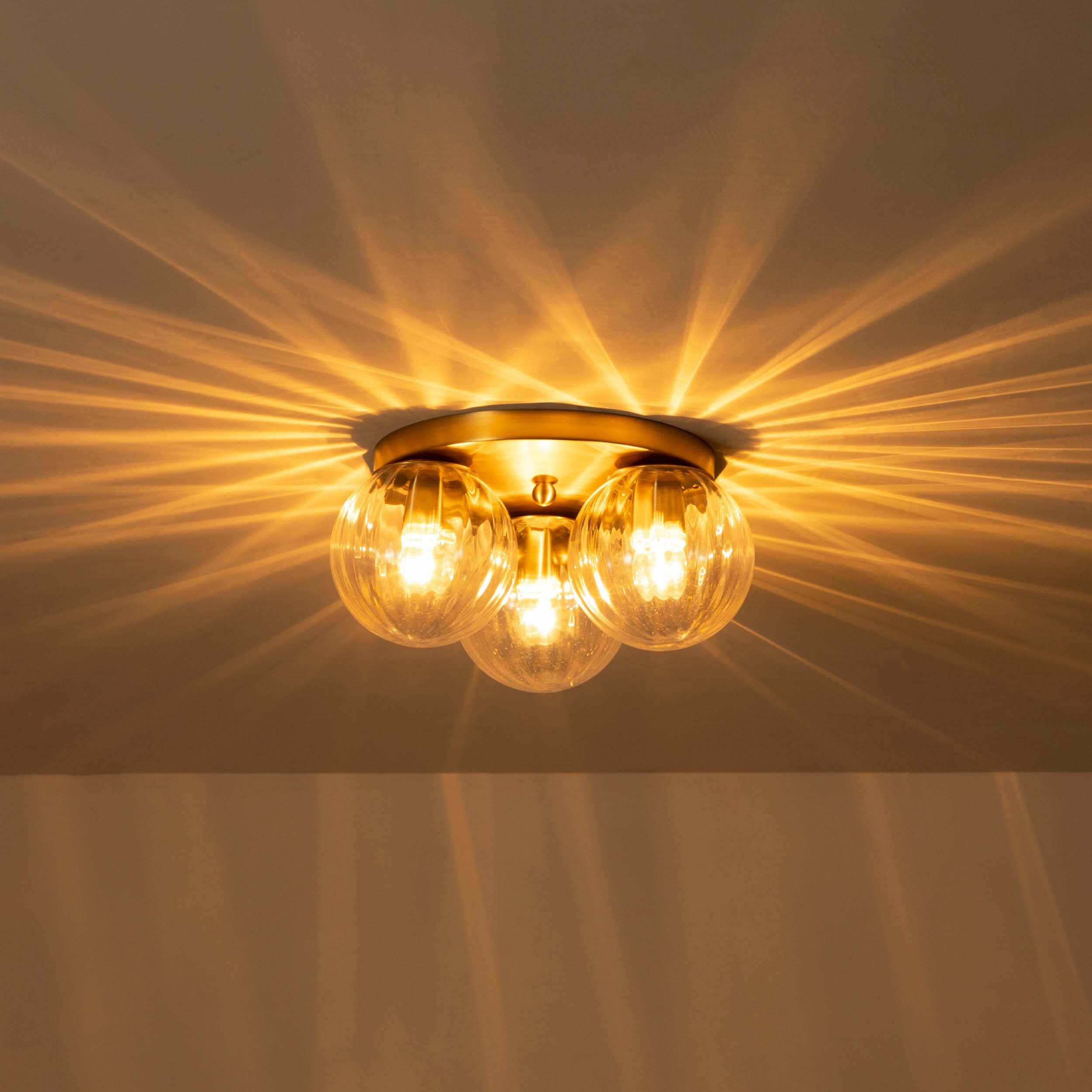 3 - Light Brass Cluster Glass Bubble Flush Mount with Striped Globe Glass Bubble - 13.4"W x 6.7"H