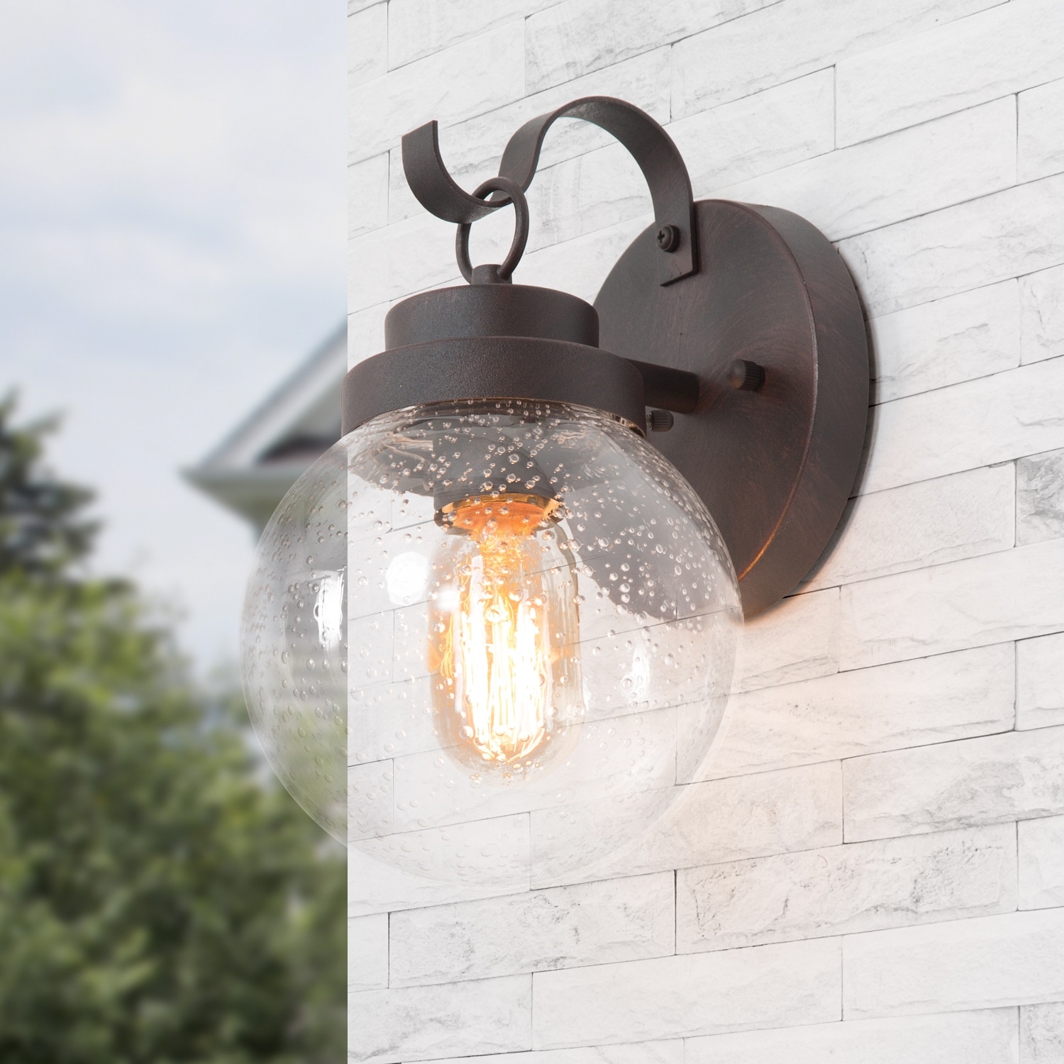 Modern 1-Light Seeded Glass Globe Outdoor Wall Sconce - L 6"x W 6.5"x H10"