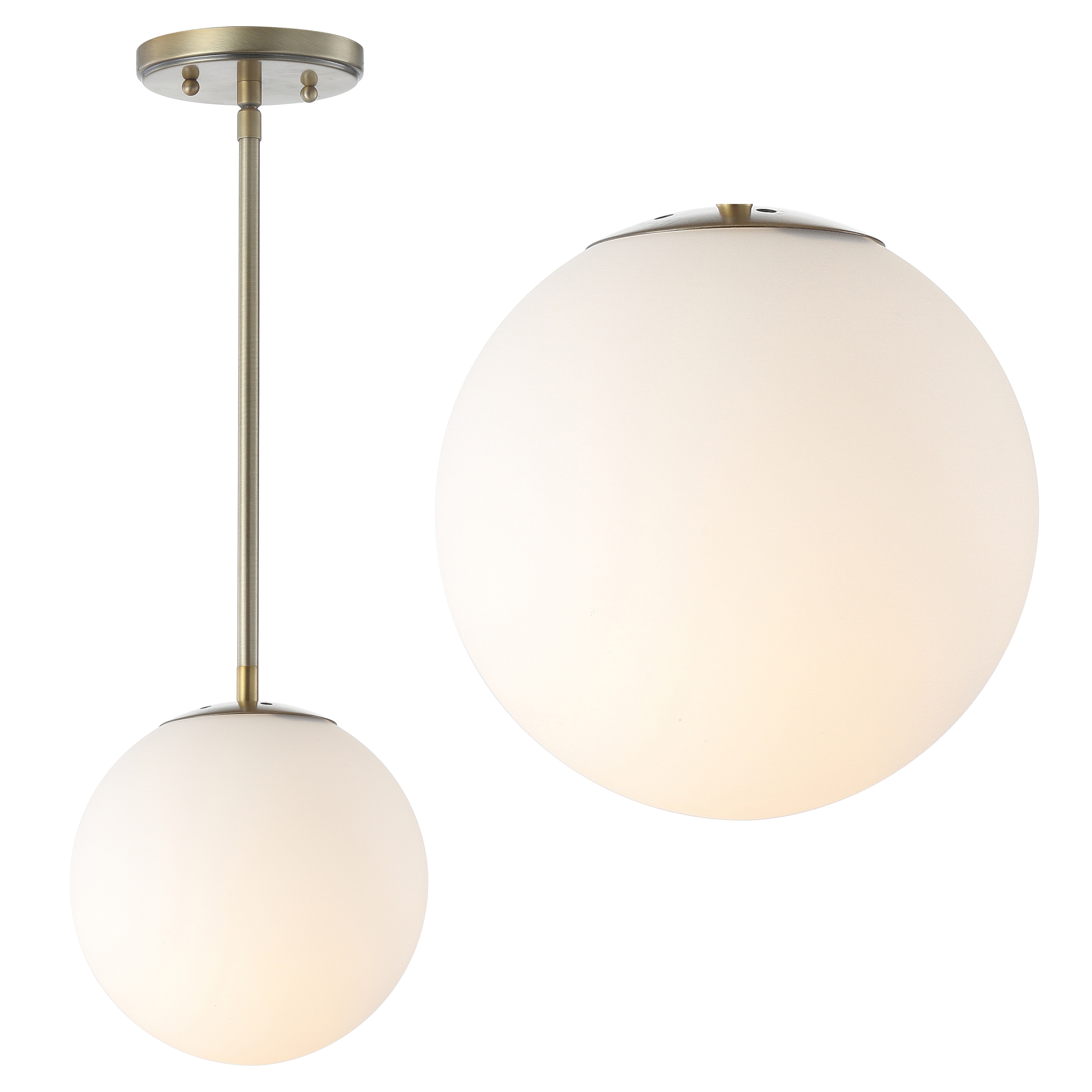 Bedford 7.75" Metal/Glass Globe LED Pendant, White/Brass by JONATHAN Y