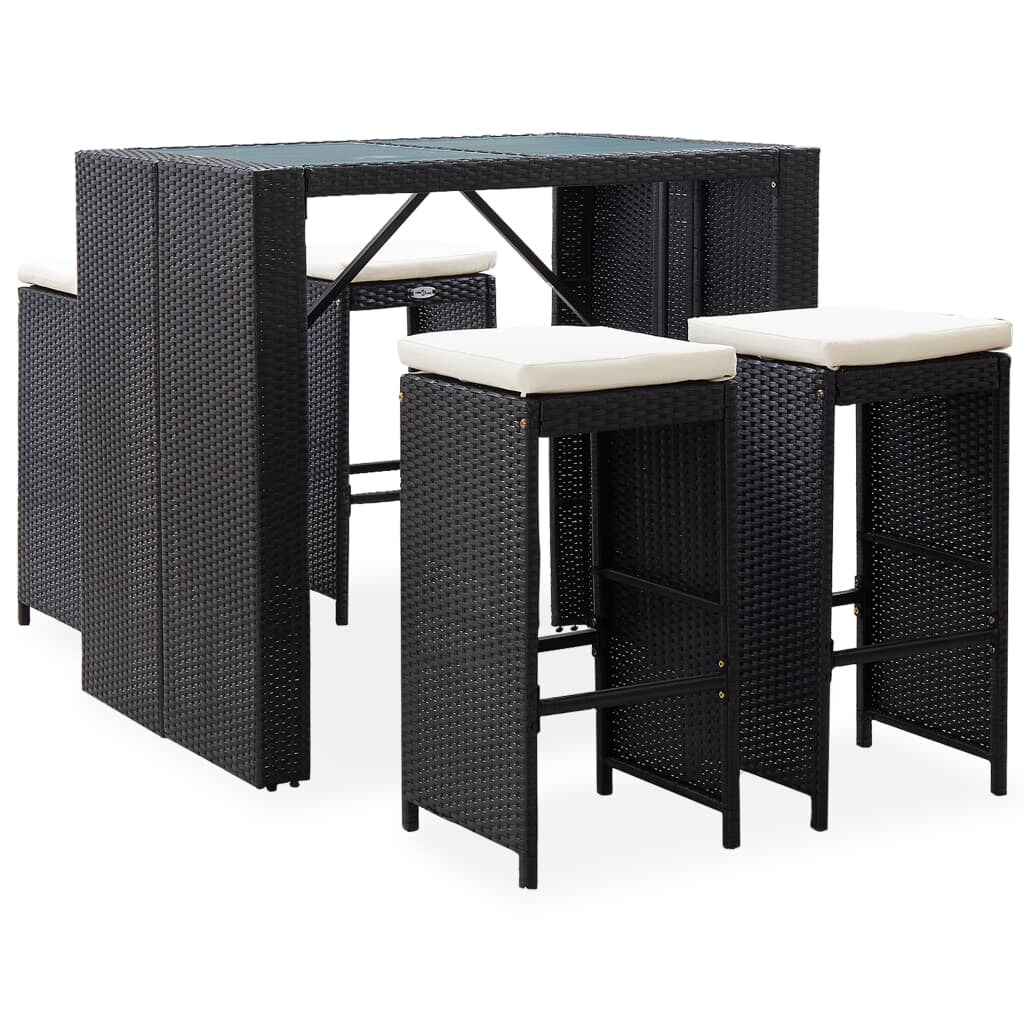 5 Piece Outdoor Bar Set Poly Rattan and Glass Black