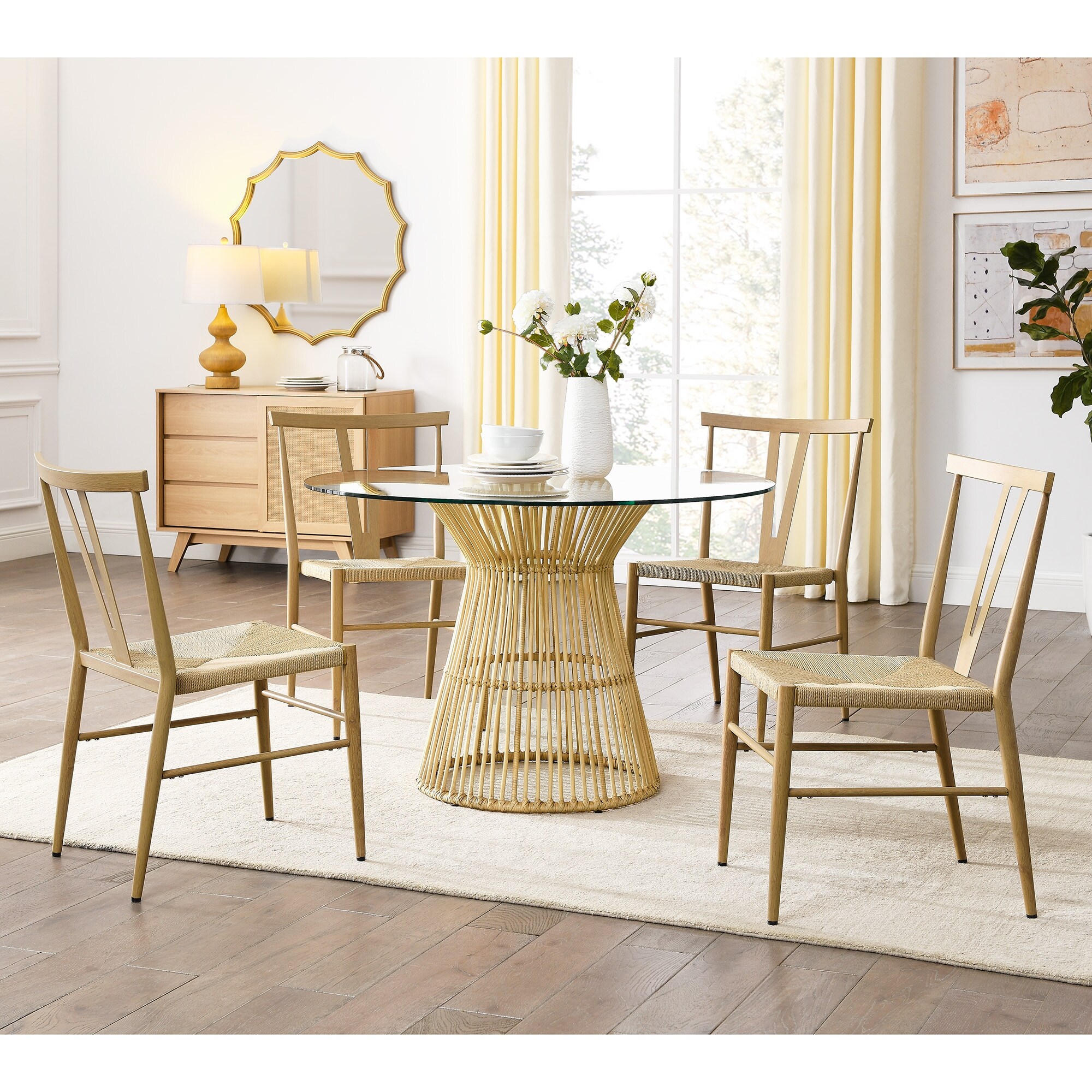 5-Piece Round Tempered Glass Top Dining Table and Metal Chair Set