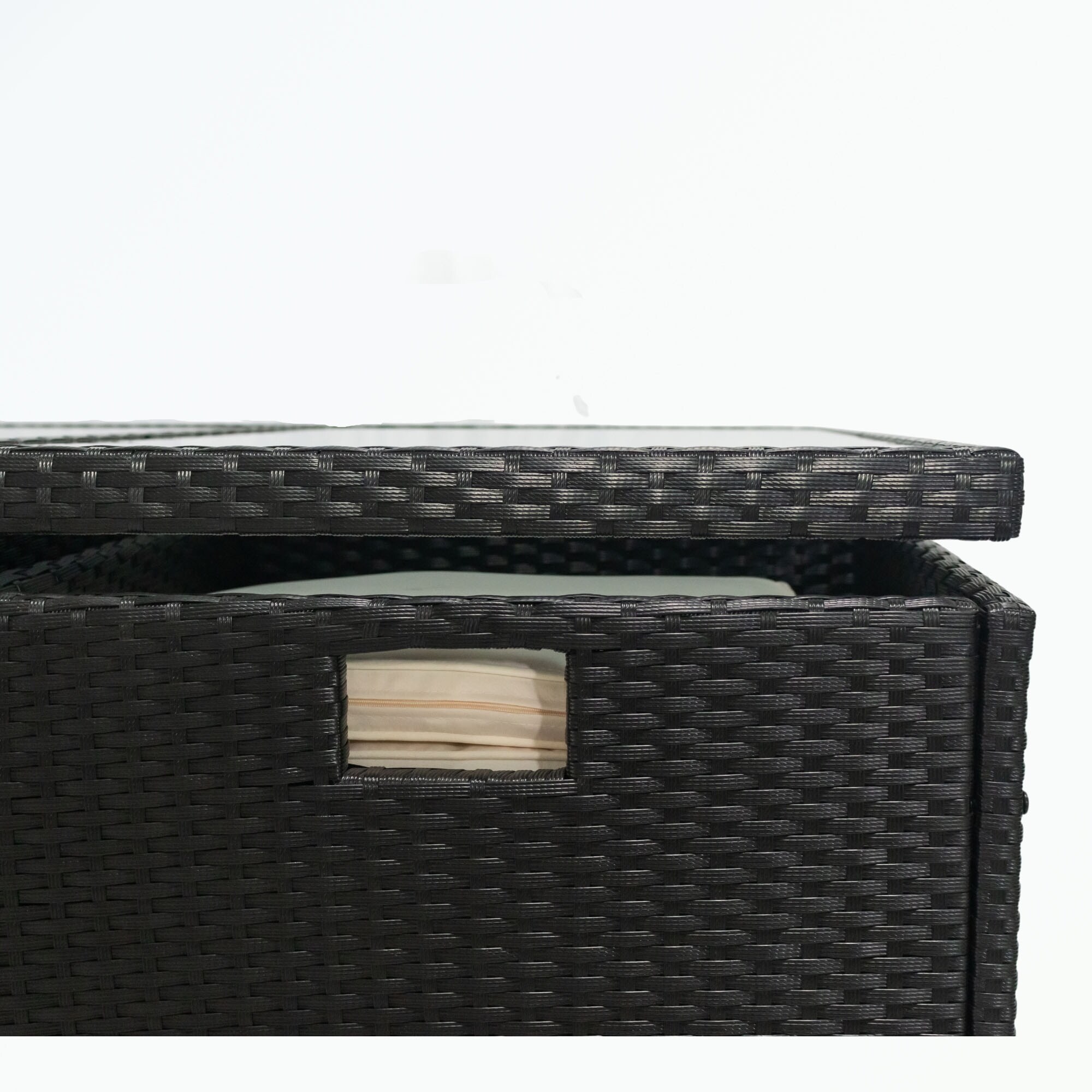 7-Piece PE Rattan Sofa Set with Glass Table and Storage