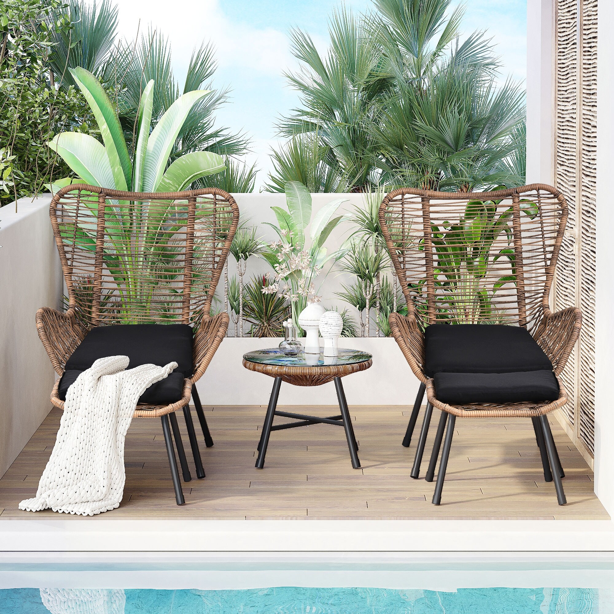 Outdoor Patio 5-Piece Rattan Bistro Set with Glass Table for Balcony