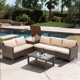 5-Piece Garden Patio Furniture Sofa Set with Glass Table