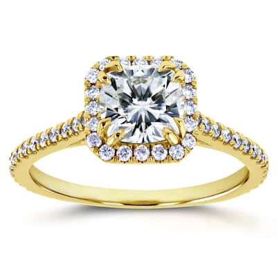 Annello by Kobelli 14k Yellow Gold 1 2/5ct TGW Cushion Moissanite and Diamond Halo Engagement Ring