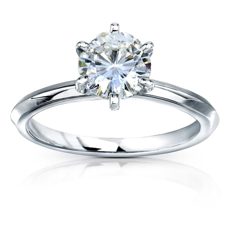 Annello by Kobelli 14k Gold 1 Carat Round Forever One Moissanite Solitaire Split-Prong W Head Engagement Ring (DEF/VS)