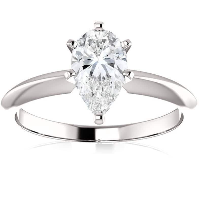 14k White Gold 1 Ct Pear Shape Diamond Solitaire Engagement Ring Lab Grown (E/VS)
