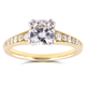Annello by Kobelli 14k Yellow Gold 1 1/10ct Cushion Moissanite and 1/4ct TDW Diamond Engagement Ring