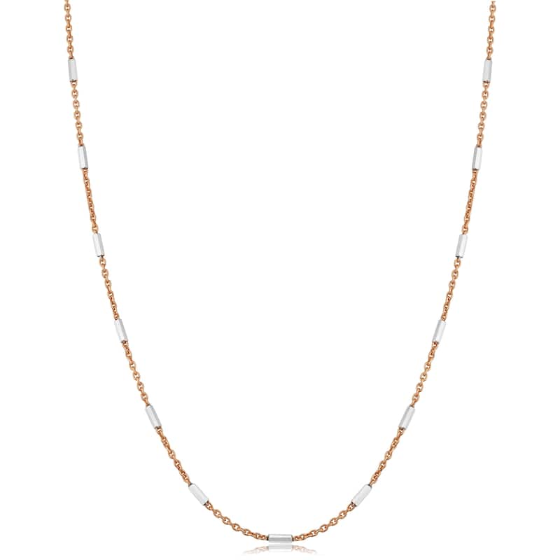 Fremada Italian Sterling Silver Tube Station Rose Gold Plated Silver Rolo Chain Necklace