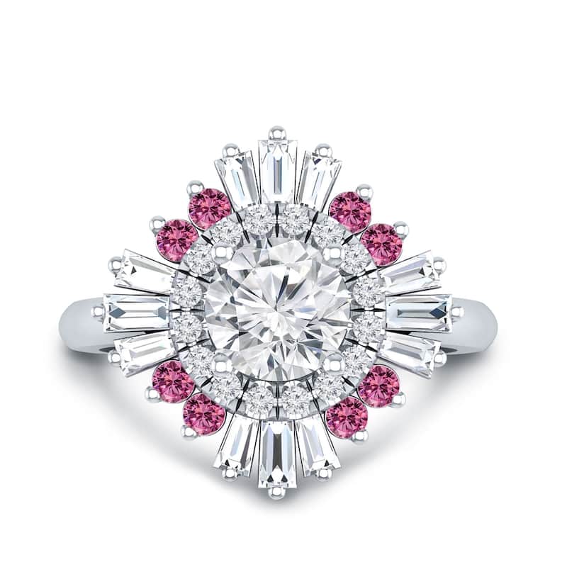 Auriya Vintage Ballerina 3/4ct Moissanite Pink Sapphire and Halo Diamond Engagement Ring 14k Gold (G-H, I1-I2)