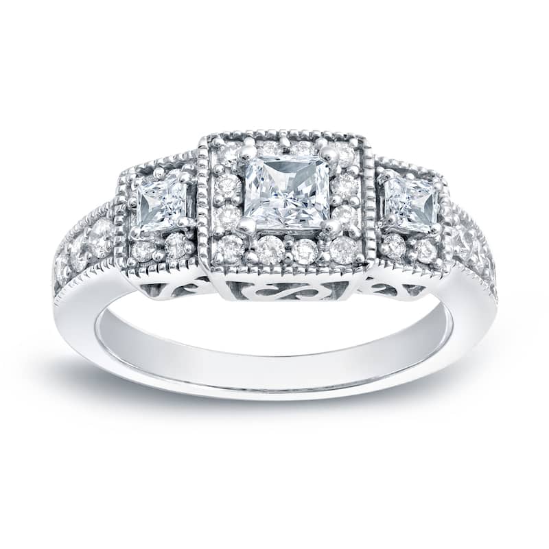 Auriya Vintage Inspired 1ct TDW 3-Stone Diamond Halo Engagement Ring 14k Gold