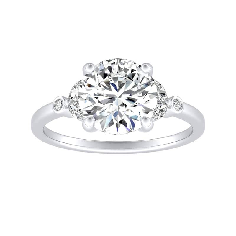 Kobelli 3.74 Carat Mixed Stone 14k Solid White Gold 3-Stone One-of-a-Kind Luna Ring - Size 8