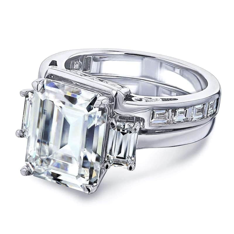 Annello by Kobelli Echo 14k White Gold 5.90 Carats TGW 3-Stone Emerald Moissanite and Baguette Diamond Bridal Rings Set.