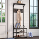Porch & Den Ashford Weathered Wood Grain Finish/ Black Metal Metal Frame Hall Tree