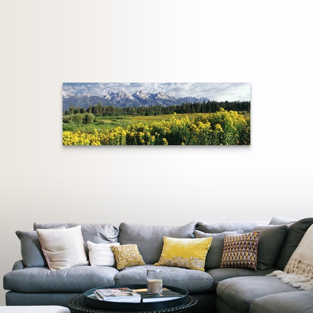 "Balsamroots in front of a mountain range, Grand Teton National Park, Wyoming" Canvas Wall Art