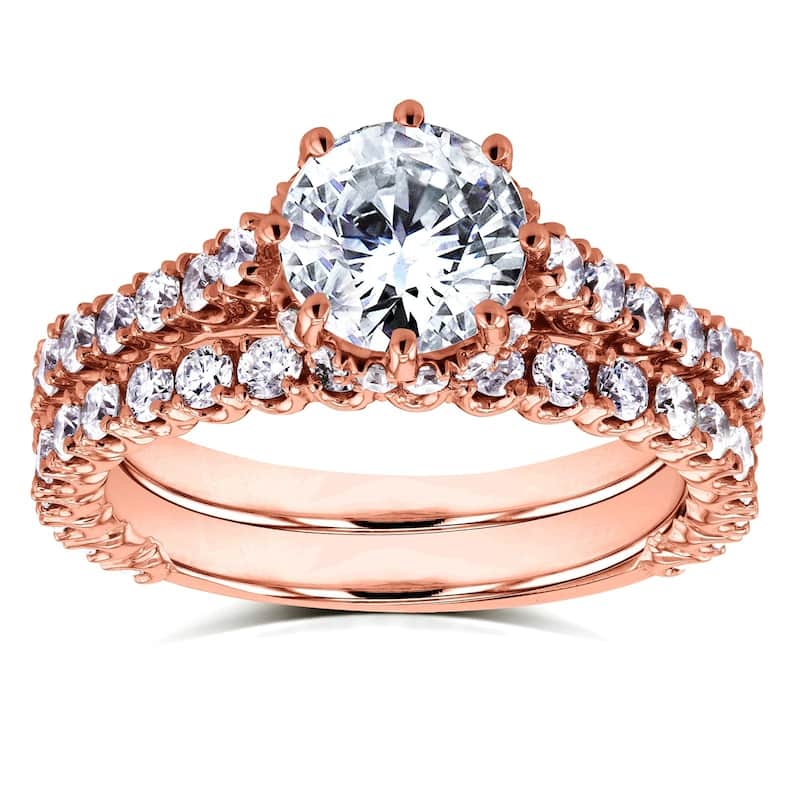 Annello by Kobelli 14k Rose Gold 2 1/10ct TDW Round Brilliant Diamond 8-Prong Center Standing Halo Bridal Set (H-I, I1-I2)