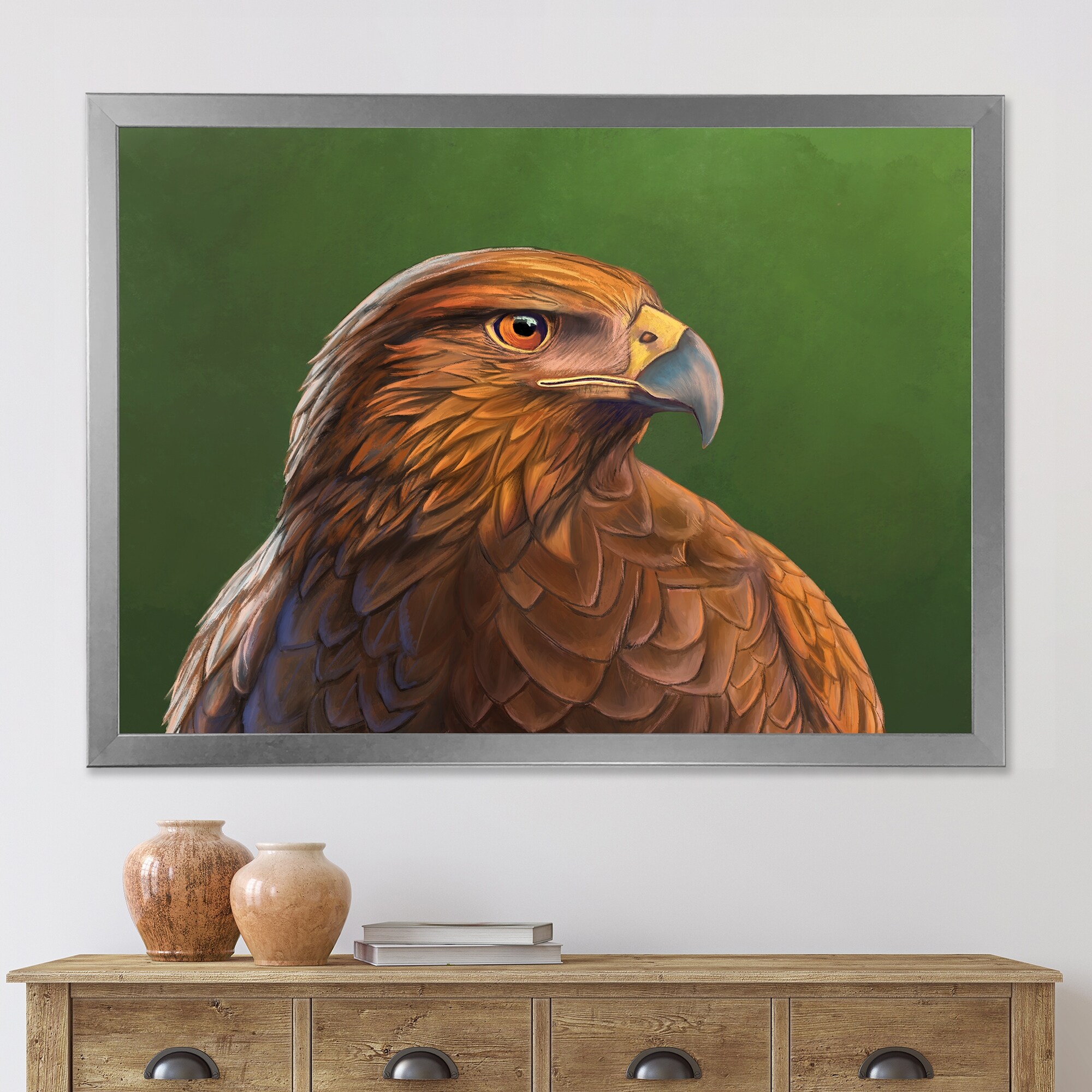 Designart "Portrait of Harris Hawk Bird" Traditional Framed Art Print