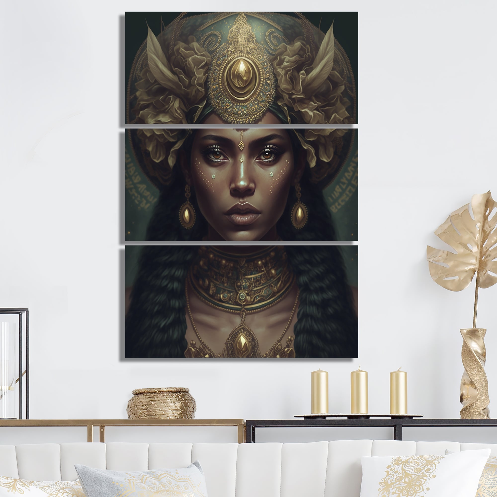 Designart "Bohemian Woman With Traditional Headdress I" Boho Woman Canvas Art Print - 3 Panels
