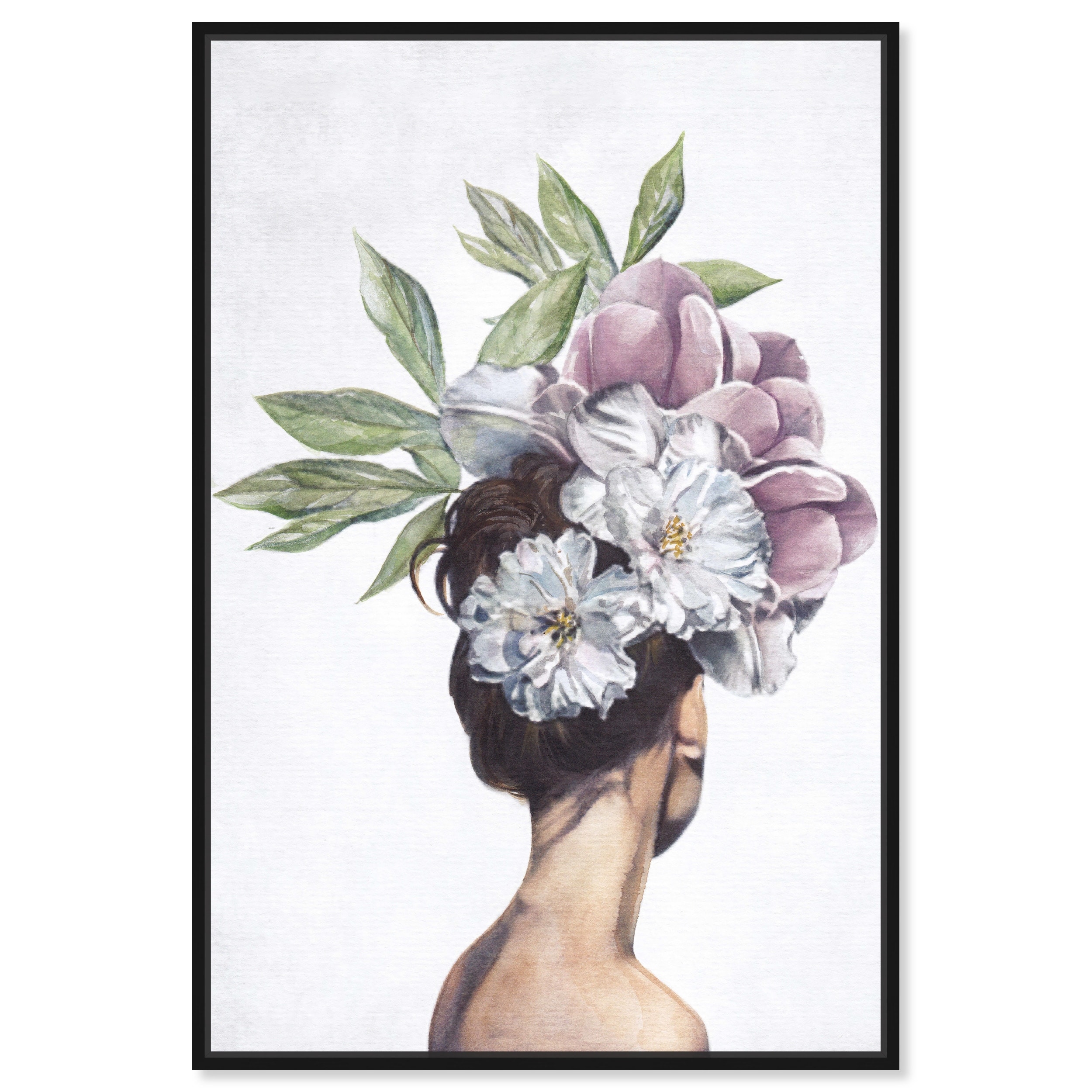 "Pretty Floral Design", Classic Flower Headdress Glam White Framed Canvas Wall Art Print for Bedroom