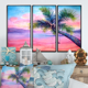 Designart "Vivid Sunset Landscape With Palm and Swing" Nautical & Coastal Framed Artwork Set of 3 - 4 Colors of Frames