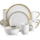 Aura 16pc Dinnerware Set with Gold Trim, Service for 4