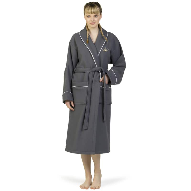 Authentic Hotel and Spa Dark Grey Unisex Turkish Cotton Waffle Weave Terry Bath Robe with White Block Monogram
