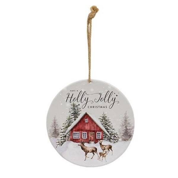 Holly Jolly Winter Barn Round Metal Ornament - 5" diameter