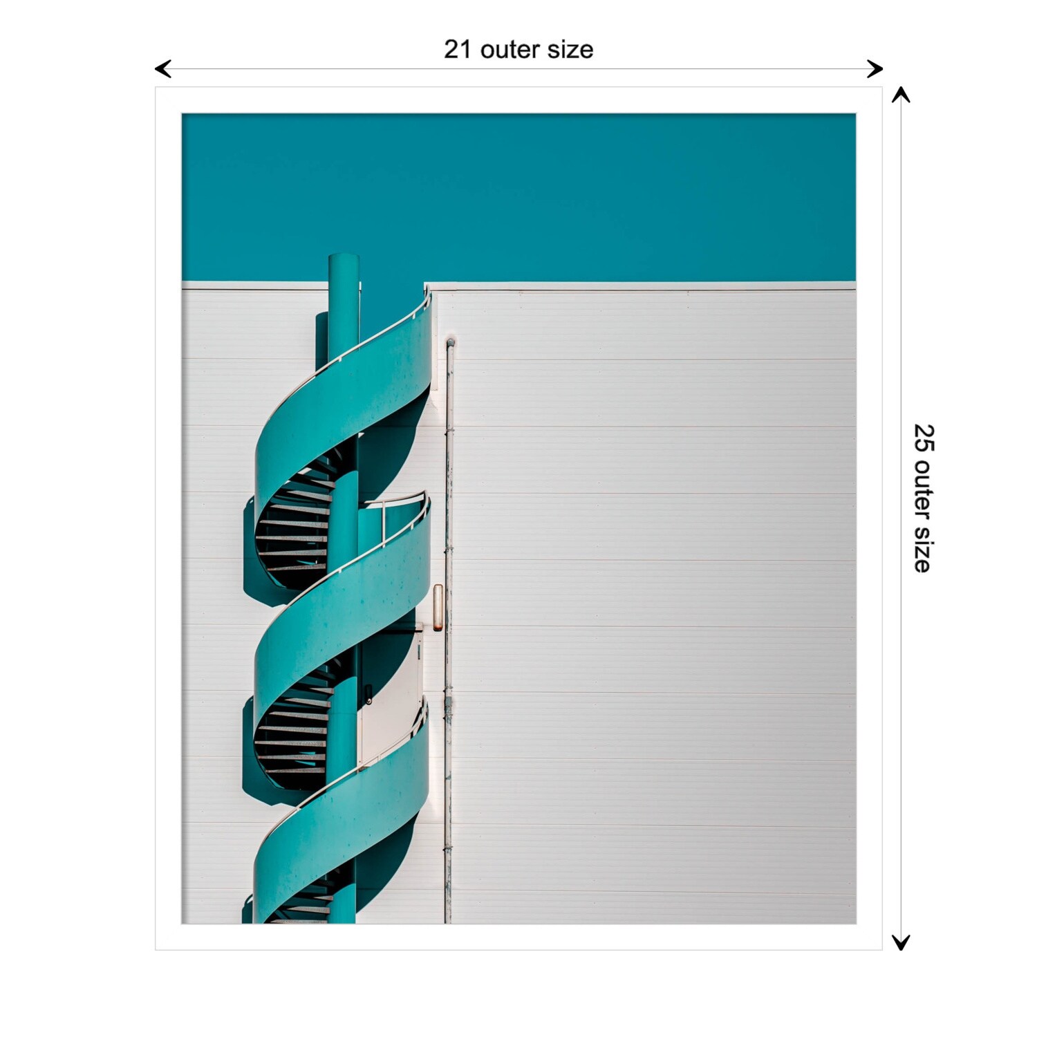 Spiral Staircase Teal by Jorg Vollrath Wood Framed Wall Art Print