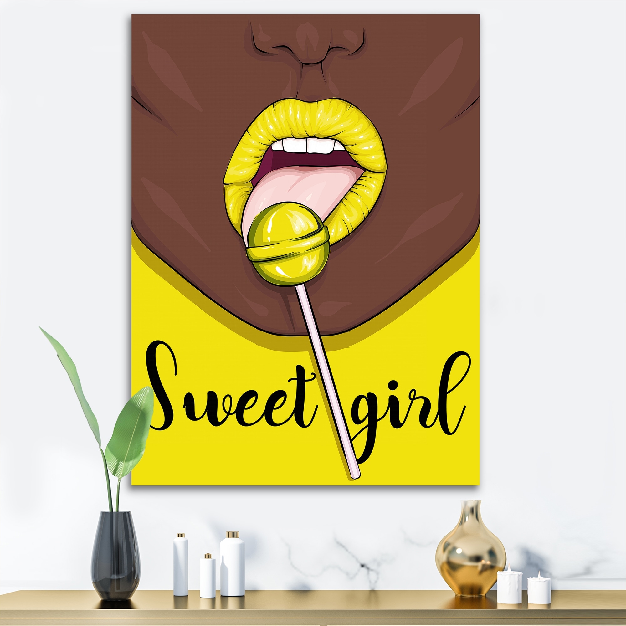 Designart "Girl Licking Yellow Candy" Modern Canvas Wall Art Print