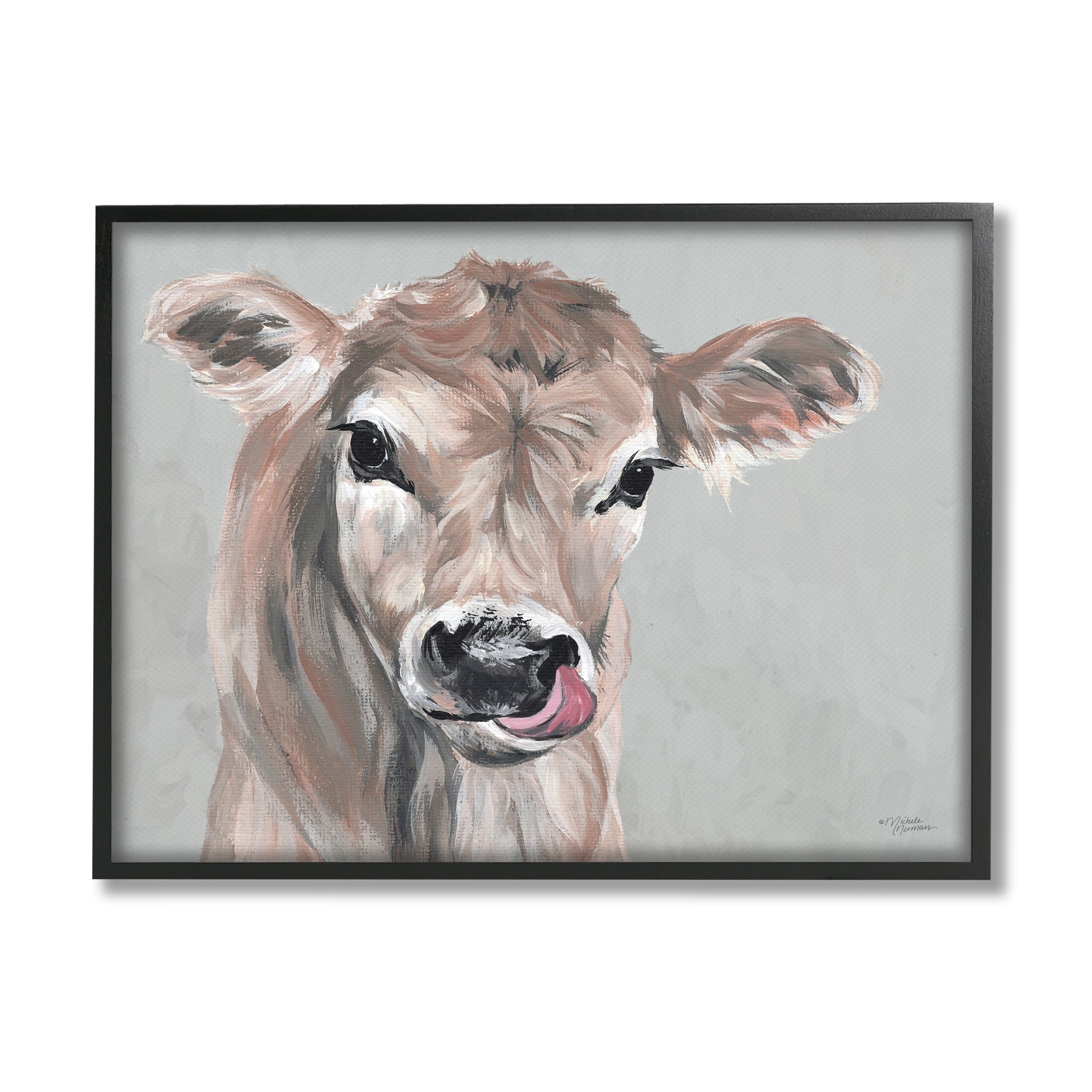 Stupell Cute Baby Farm Cow Calf Licking Lips Portrait Framed Wall Art - Grey