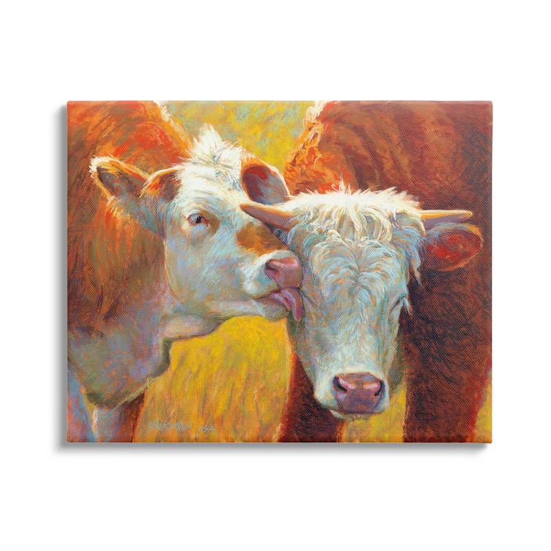 Stupell Industries Cow Licking Farm Animals Canvas Wall Art by Rita Kirkman