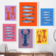 Colorful Sardine Lobster Fish Ocean Animal Poster Canvas Painting Vintage Wall Art for Kitchen Living Room Home Decoration