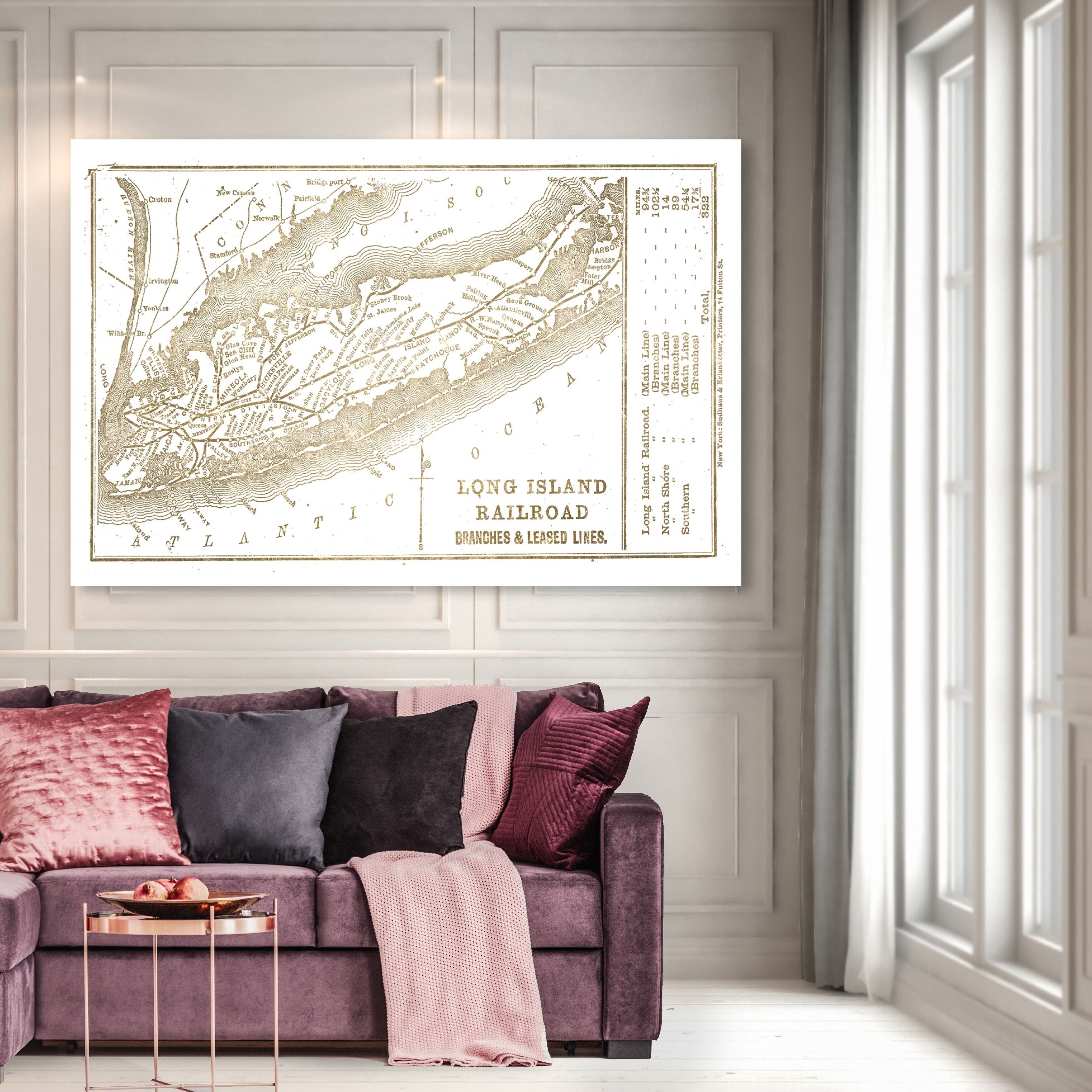 Oliver Gal 'Long Island Rail Road Map Gold' Maps and Flags Wall Art Canvas Print - Gold, White