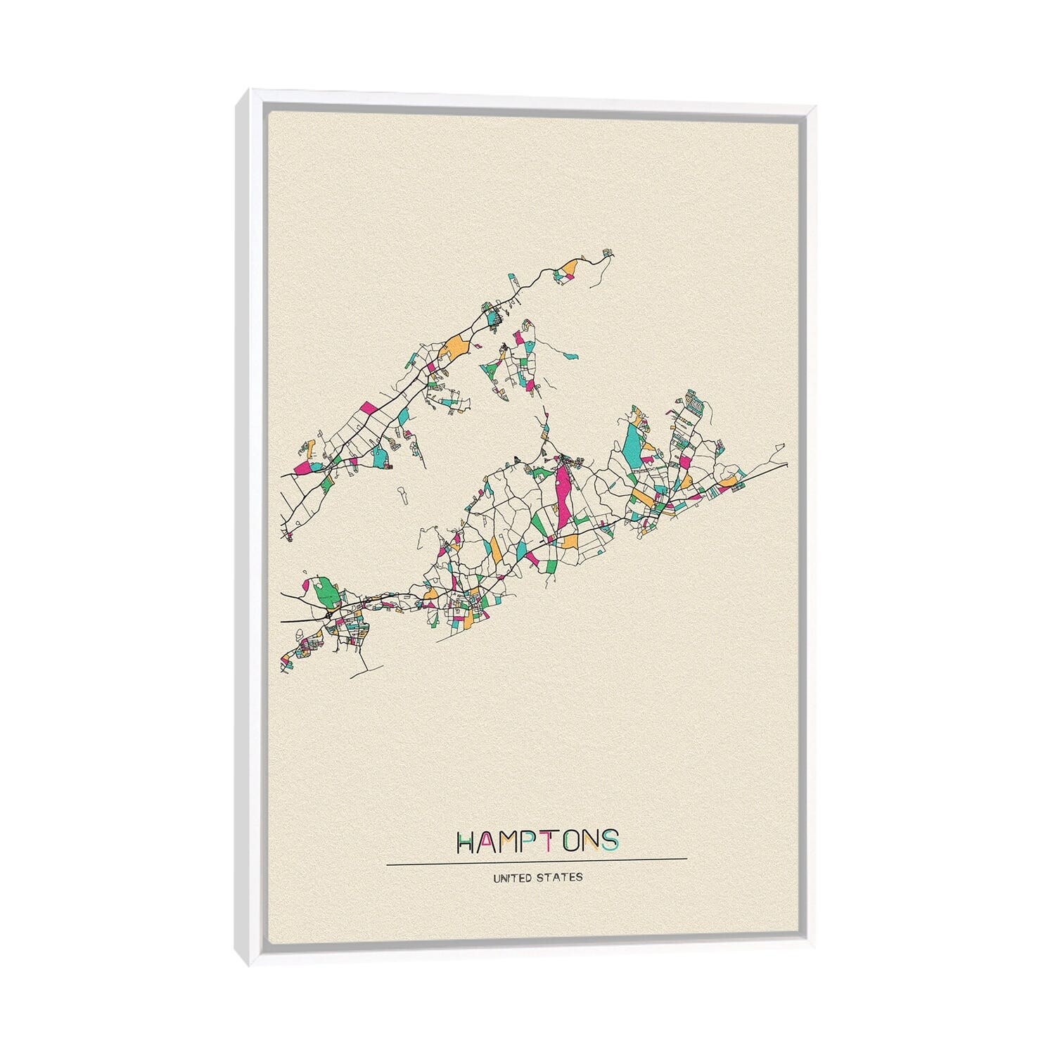 iCanvas "The Hamptons, Long Island Map" by Ayse Deniz Akerman Framed