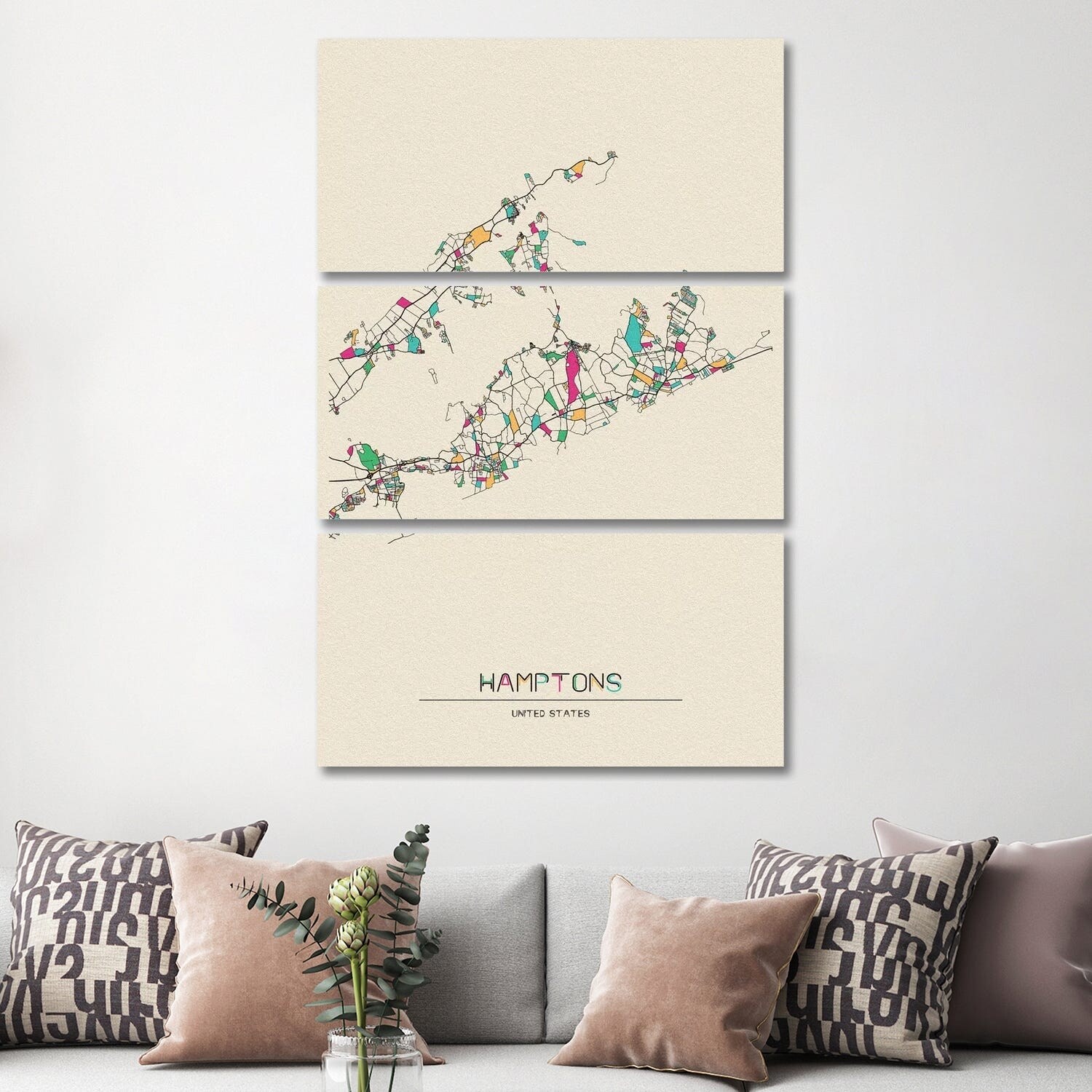 iCanvas "The Hamptons, Long Island Map" by Ayse Deniz Akerman 3-Piece Canvas Wall Art Set
