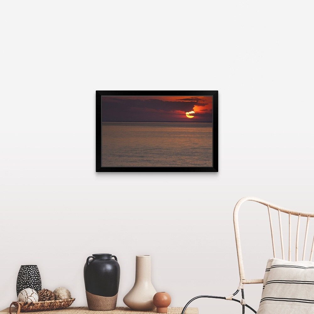 "Sunset over the sea, Long Island Sound, Orient Point, Long Island, New York S" Black Framed Print