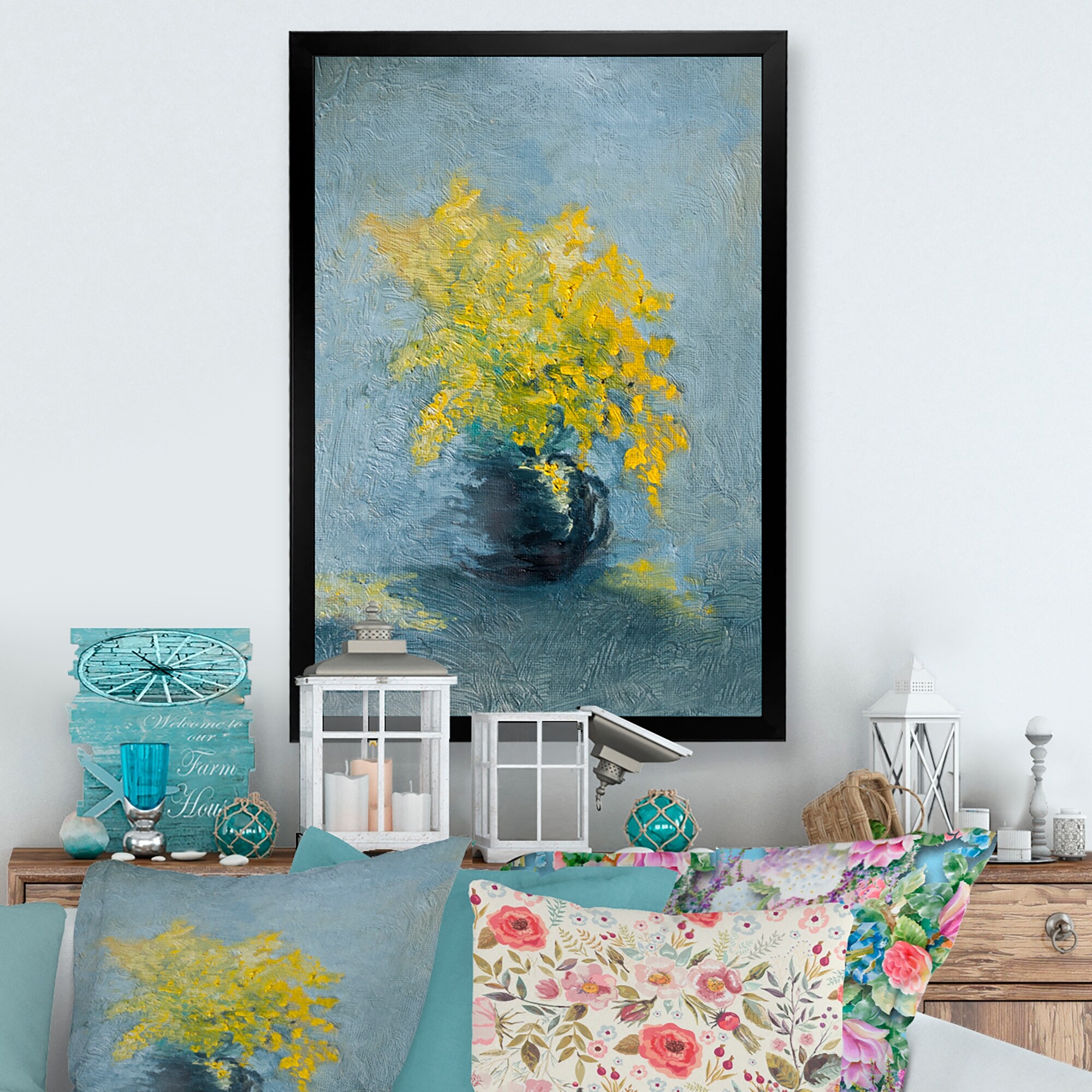 Designart "Still Life Yellow And Blue Mimosa" Traditional Framed Wall Decor