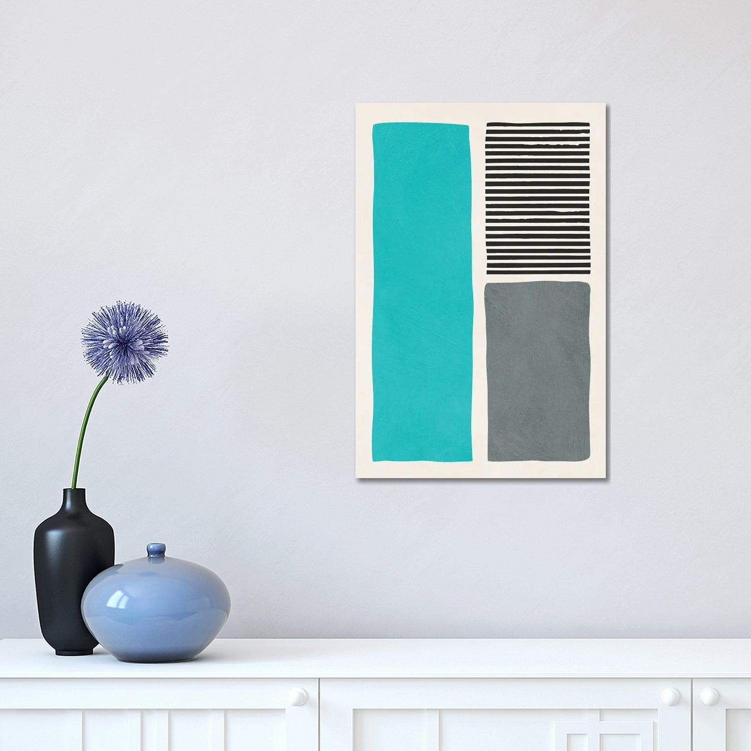 iCanvas "Turquoise Gray Min Abstract Black Lines" by EmcDesignLab Canvas Print