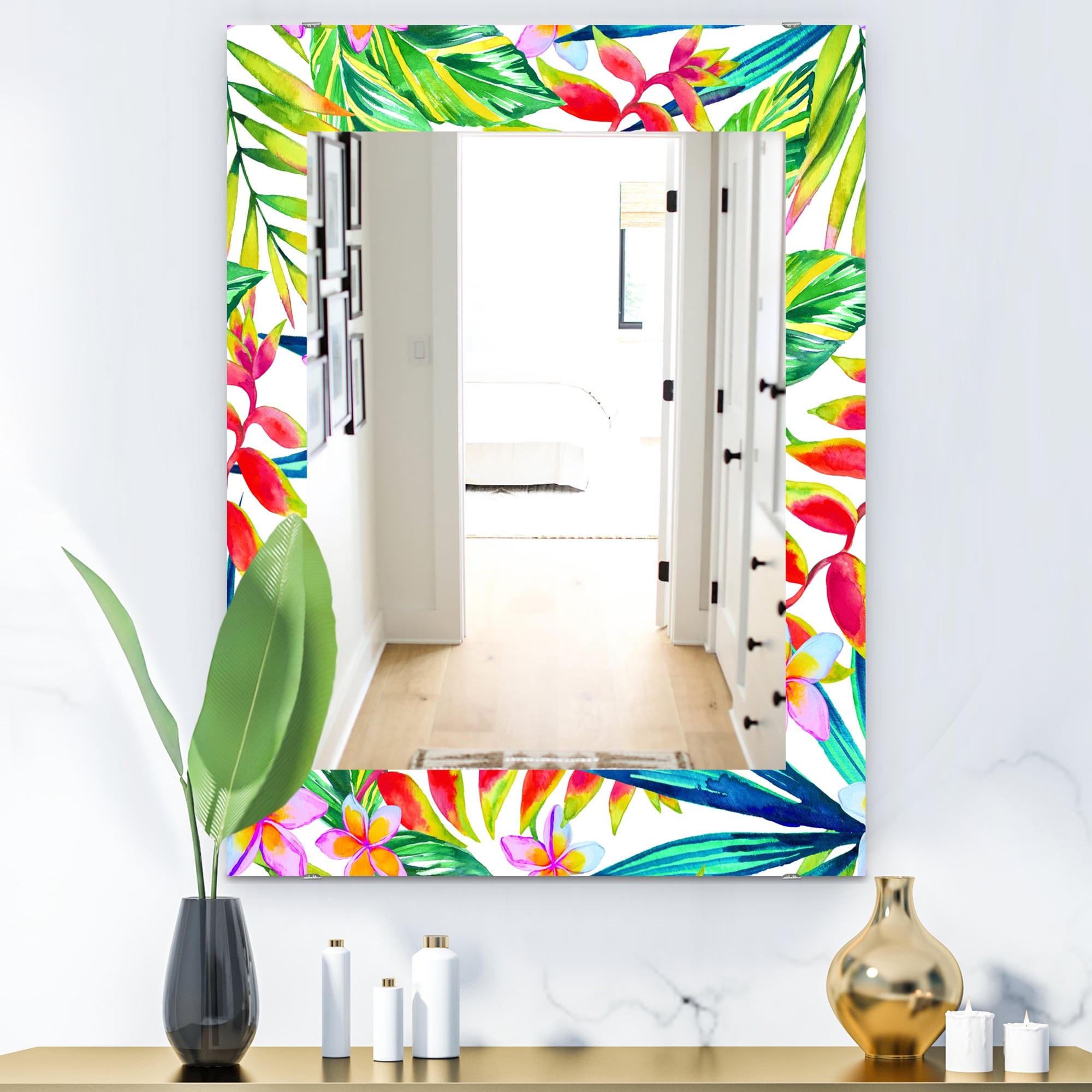 Designart 'Tropical Mood Bright 13' Printed Traditional Tropical Floral Art Mirror