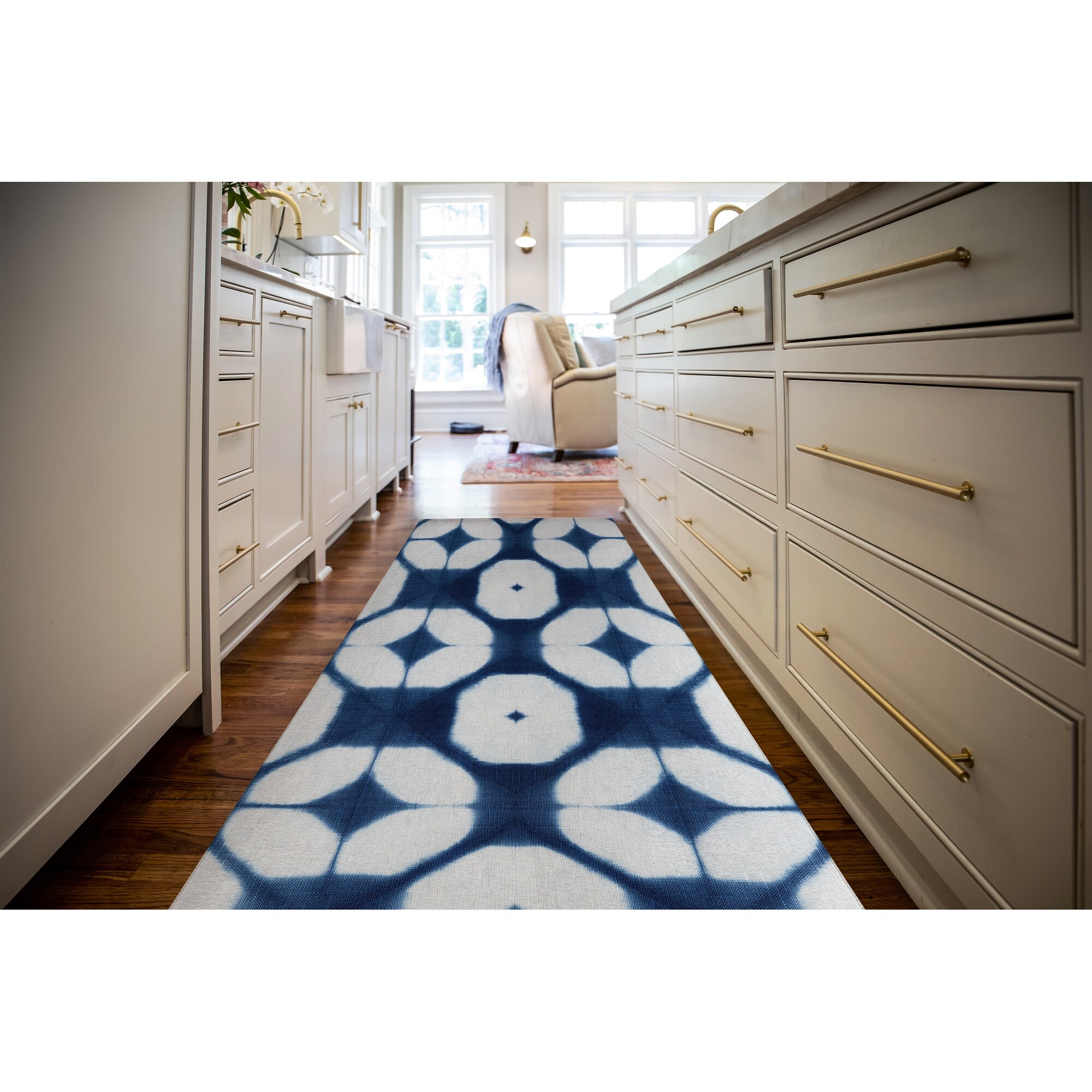 SHIBORI FLEUR Kitchen Mat By Nancy Green