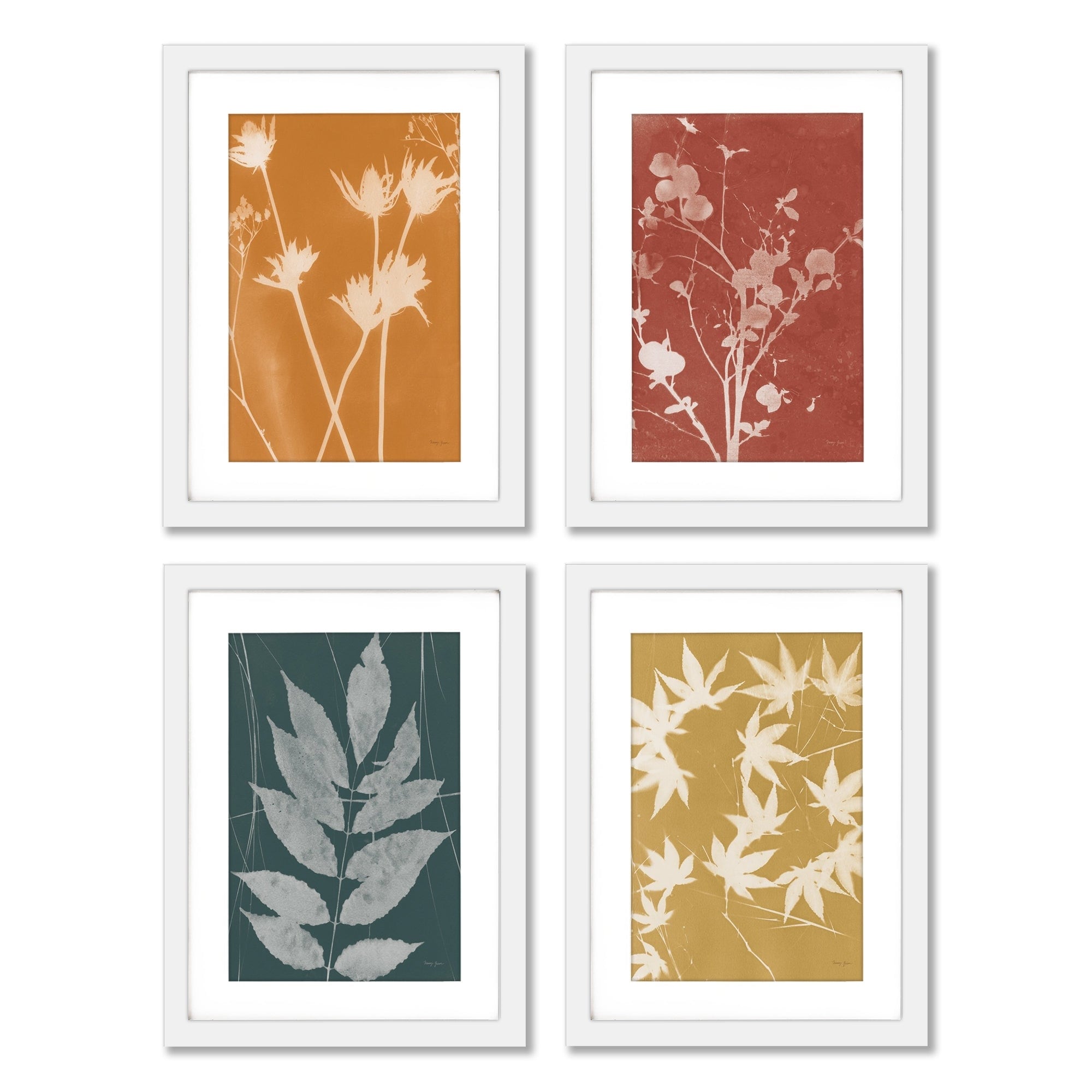 Fall Cyanotype by Nancy Green - 4 Piece Gallery Framed Print Art Set