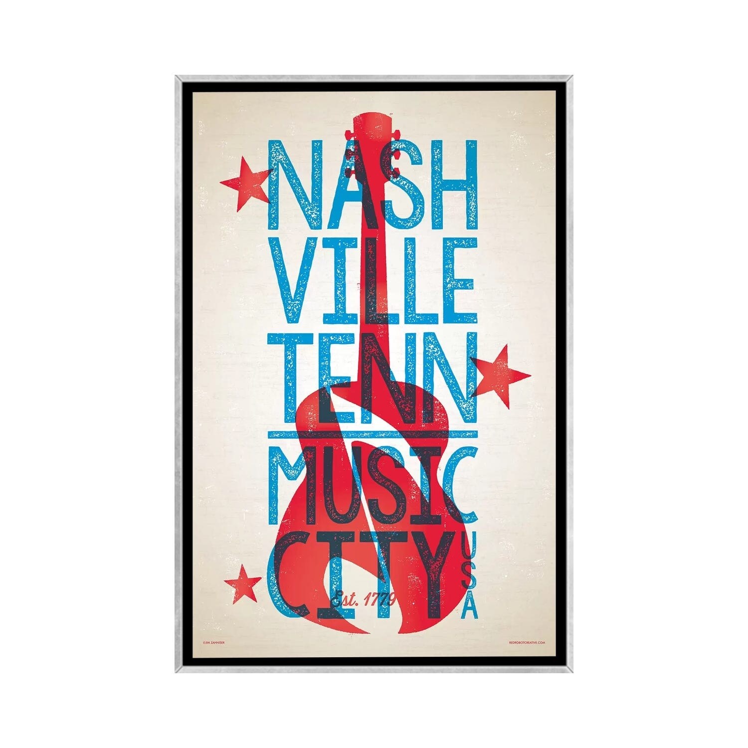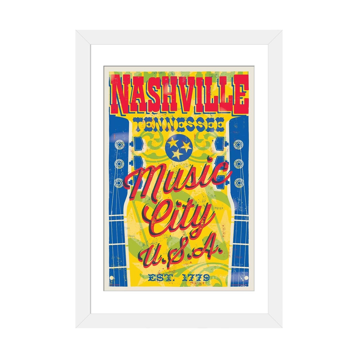 iCanvas "Nashville Letterpress Style Poster" by Jim Zahniser Framed