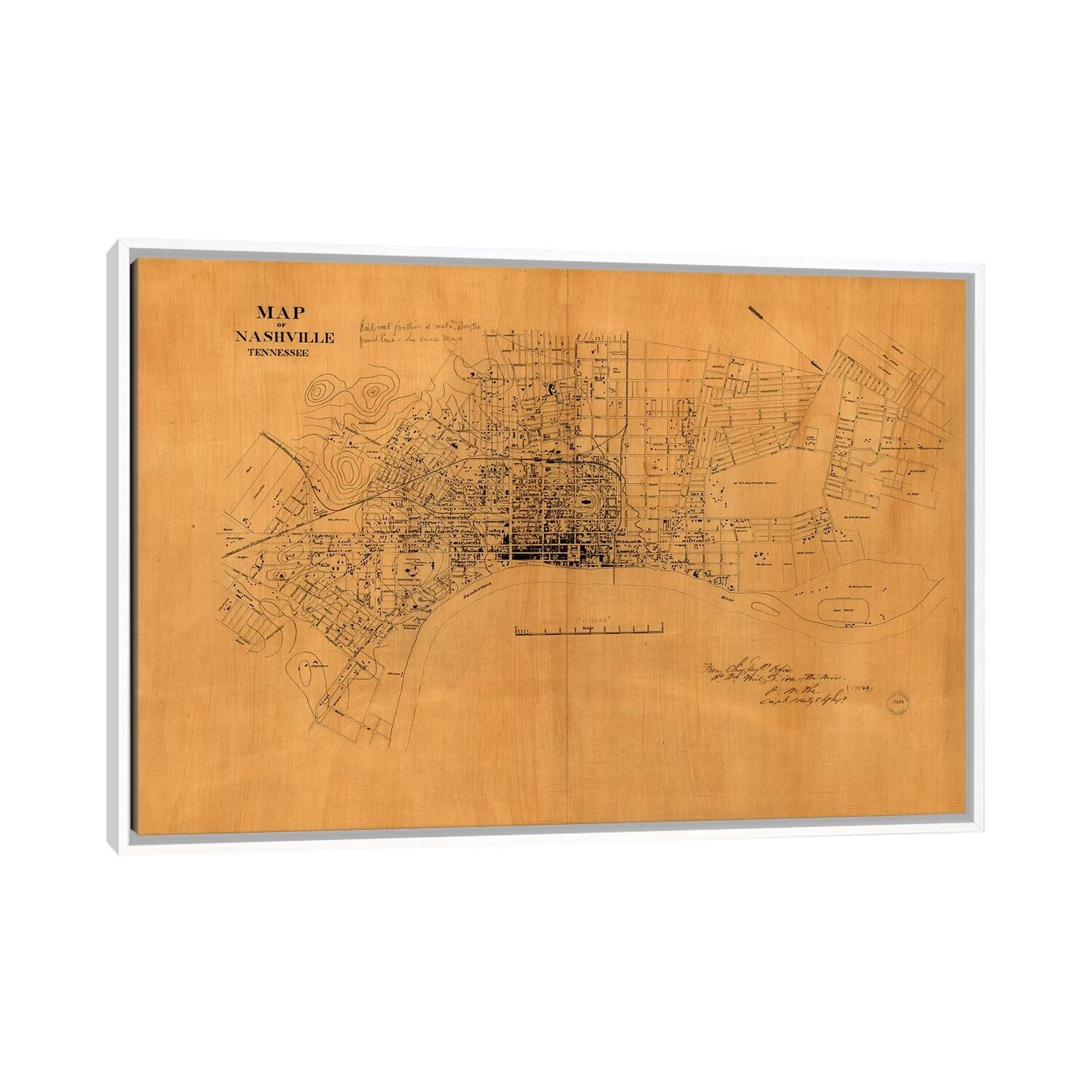 iCanvas "Nashville, Tennessee Map, 1860s" by Vintage Apple Collection Framed Canvas Print