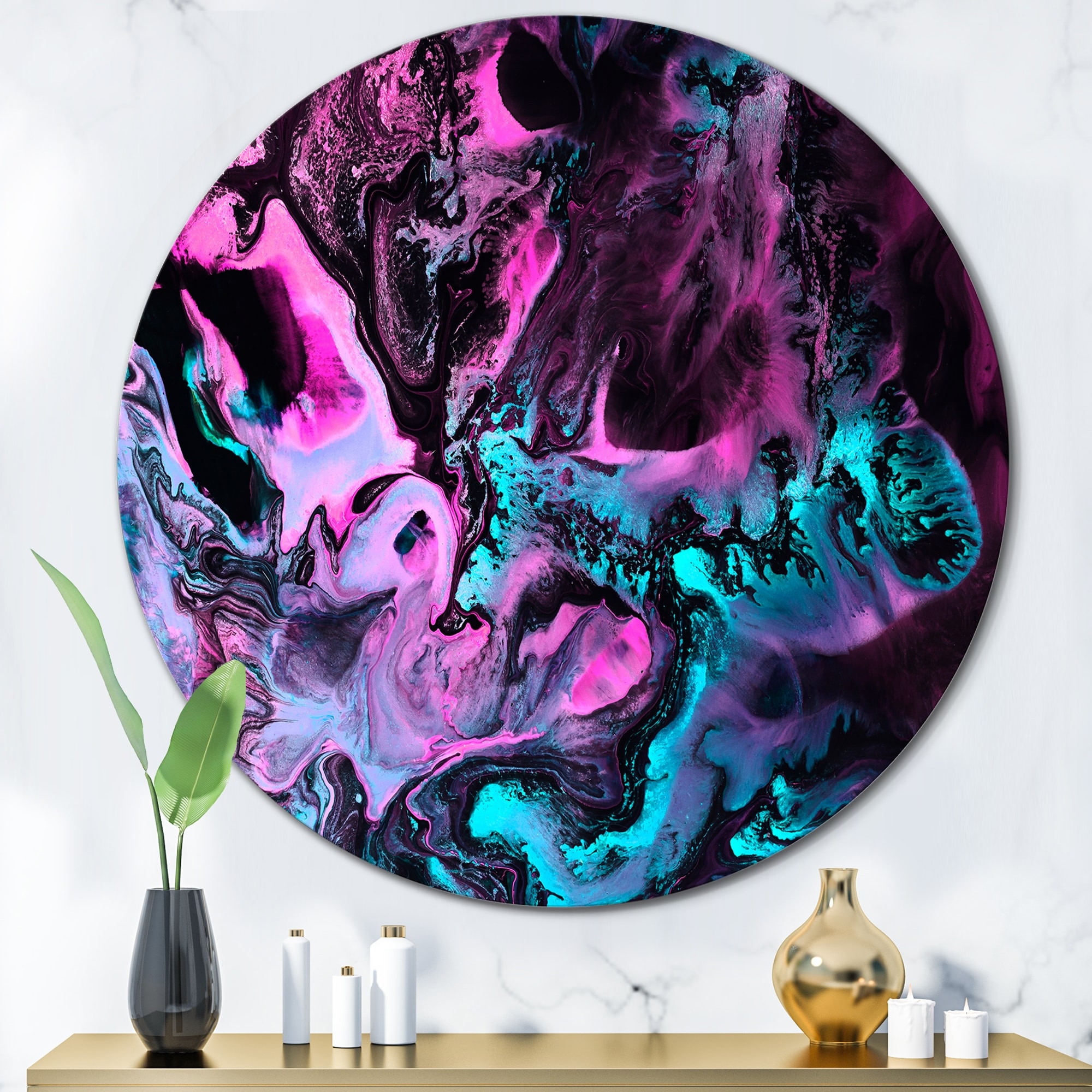 Designart 'Neon Green And Pink Liquid Art' Modern Metal Circle Wall Art