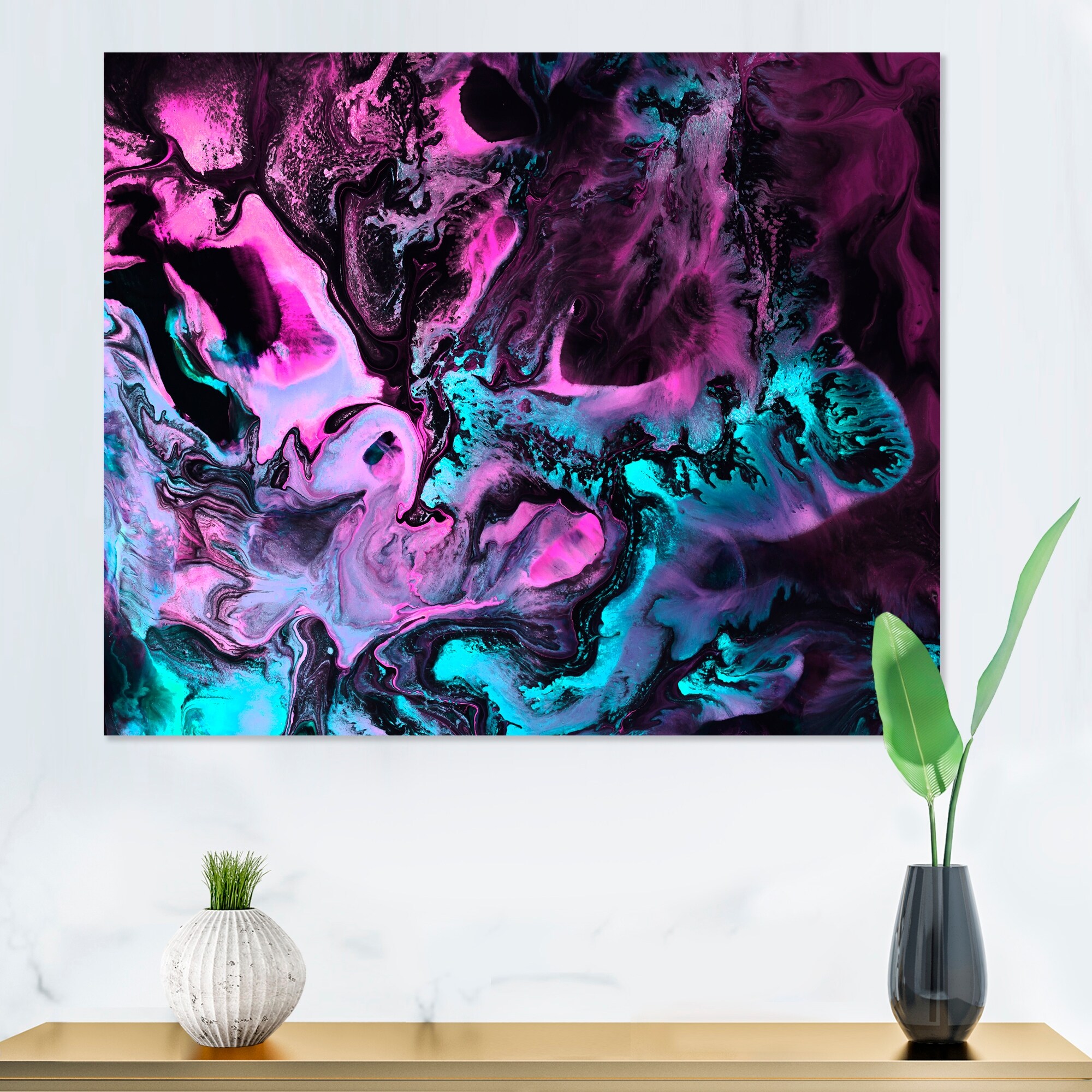 Designart "Neon Green And Pink Liquid Art" Modern Canvas Wall Art Print